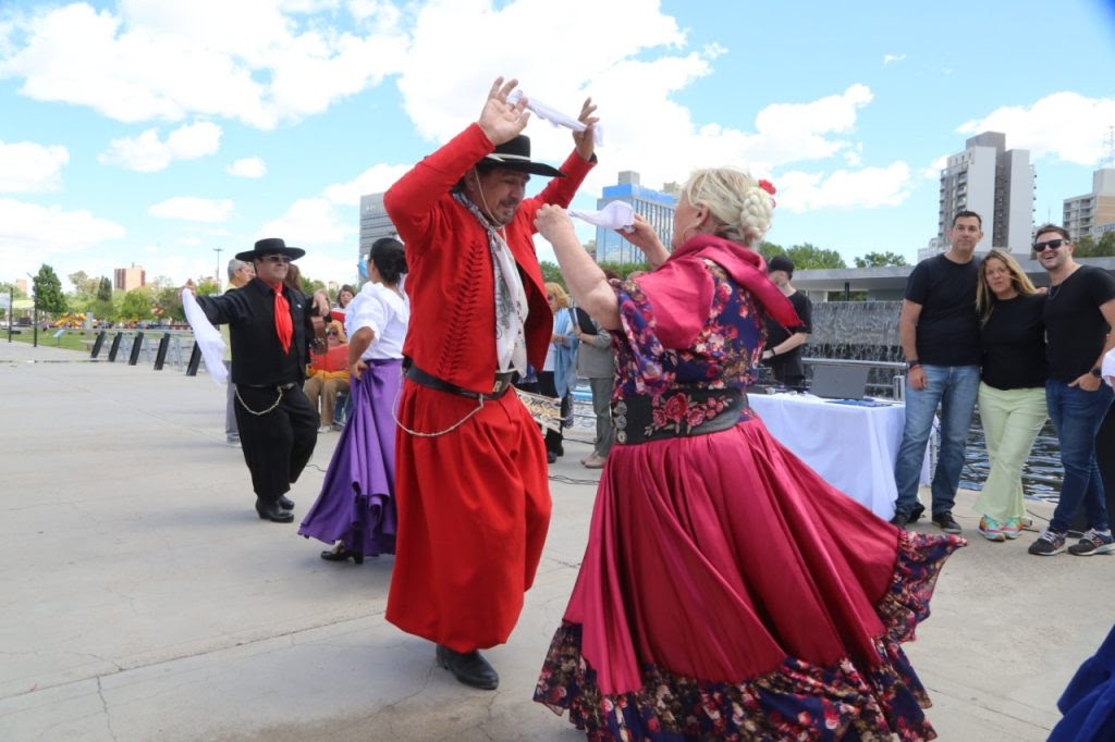 El cenotafio de la ciudad se vistió de color y música y fue por una horas el centro de atracción de quienes caminaban por esa zona del bajo neuquino, quienes se encontraron con un grupo de Adultos Mayores celebrando el Día de la Tradición, en conjunto con la Municipalidad y los ex combatientes para festejar el Día de la Tradición.