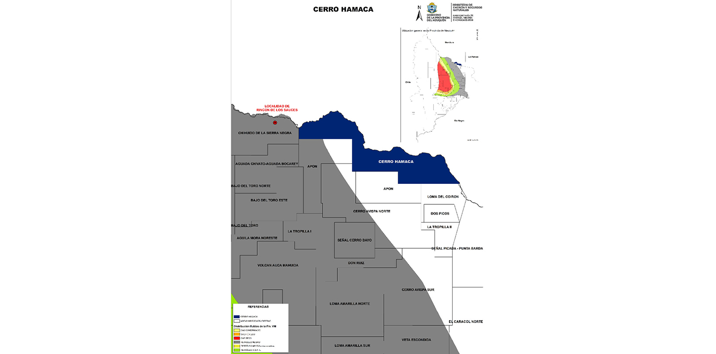 El Gobierno Provincial, a través del Ministerio de Energía y Recursos Naturales, llama a licitación pública, nacional e internacional para la explotación, desarrollo y exploración de hidrocarburos del área Cerro Hamaca. Se trata de un área en producción revertida por la empresa YPF, cuya producción característica es el petróleo y en menor medida el gas.
