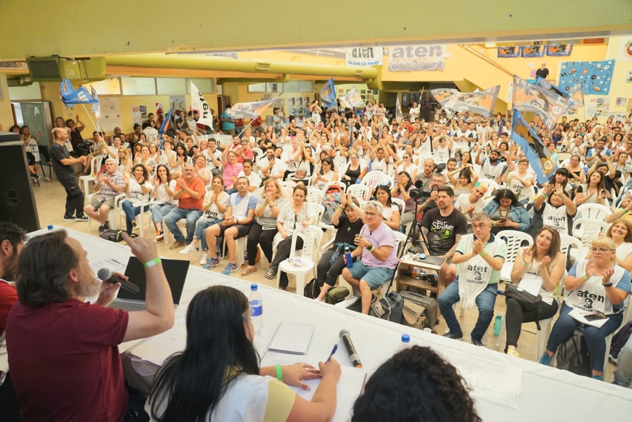 Ante una multitudinaria Asamblea Ordinaria, las y los afiliados a aten aprobaron por unanimidad la Memoria y Balance de los períodos 2019, 2020 y 2021, años que estuvieron fuertemente marcados por la pandemia, por el desfinanciamiento educativo que generó el macrismo y sus consecuencias posteriores y por la explosión en Aguada San Roque, que causó la muerte de tres trabajadores.