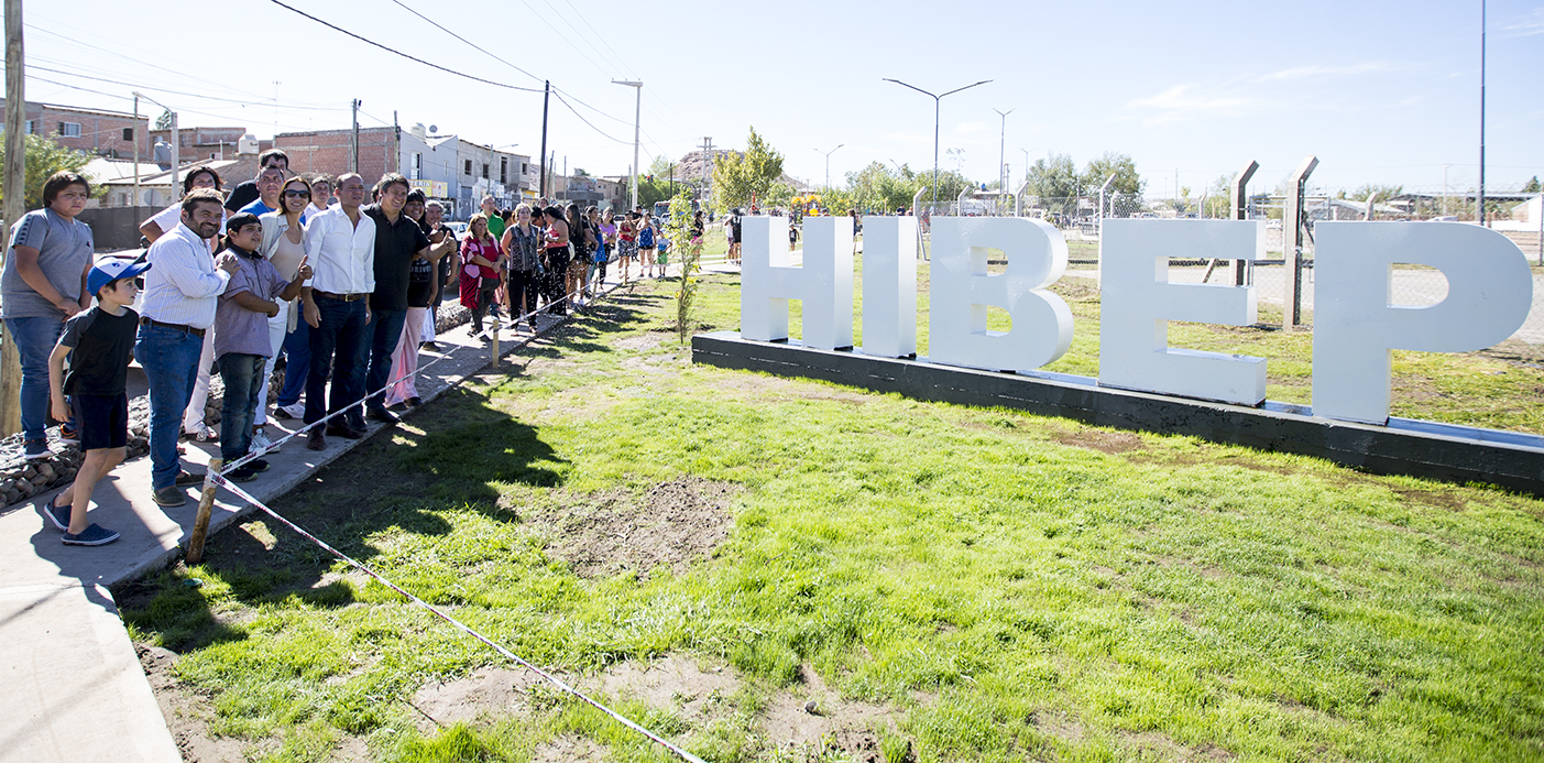 Hibepa recuperó un espacio degradado y la convirtió en una plaza que lleva con orgullo el nombre del barrio en grandes letras corpóreas. Ahora luce con césped, con sendero aeróbico, estaciones de juegos saludables y para niños, totalmente iluminada con luces led. A un lado se recuesta una cancha multifunción de fútbol, de tenis y aros para hacer magia con la pelota naranja de básquet.